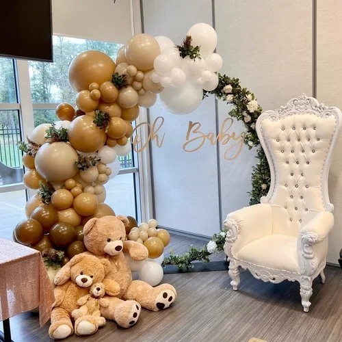Backdrop + Tablecloths/Centerpieces + Place Settings + Welcome Entryway + B-A-B-Y Dessert Table Rental + Throne Chair and More!