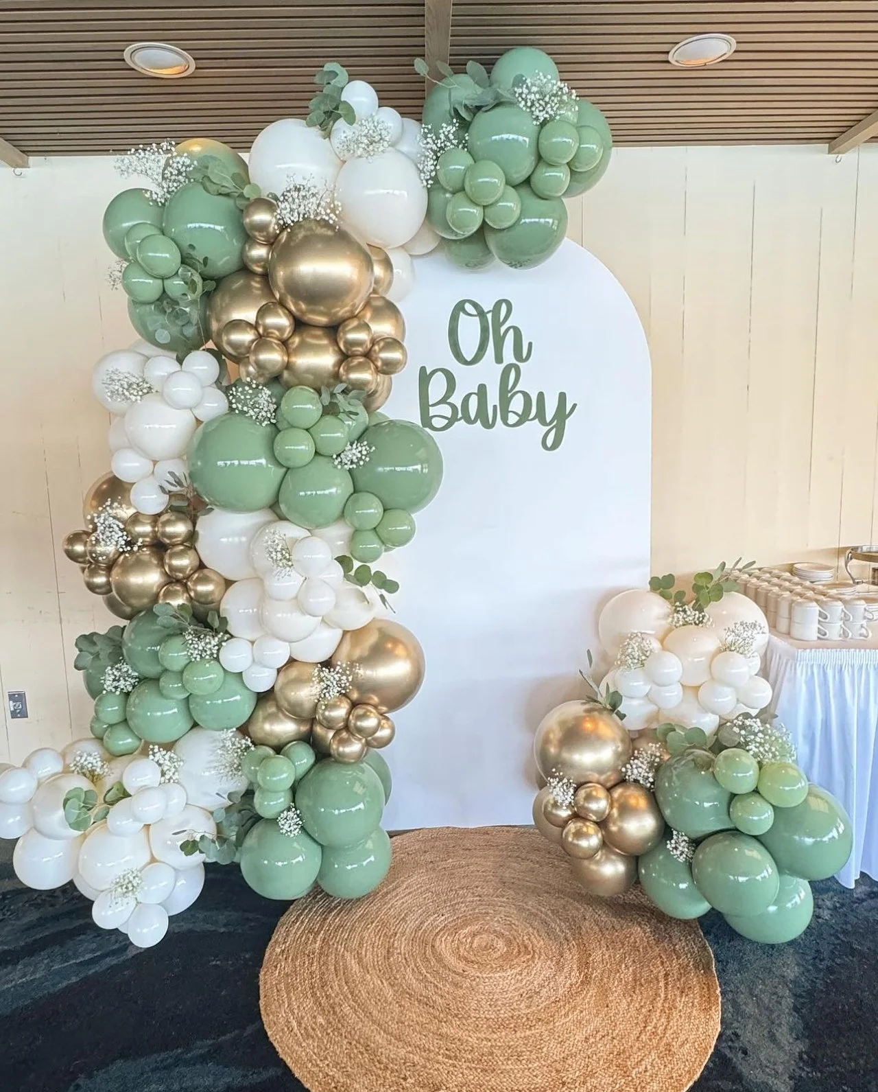 Backdrop + Tablecloths/Centerpieces + Welcome Entryway Balloon Display + BABY Dessert Table and More!
